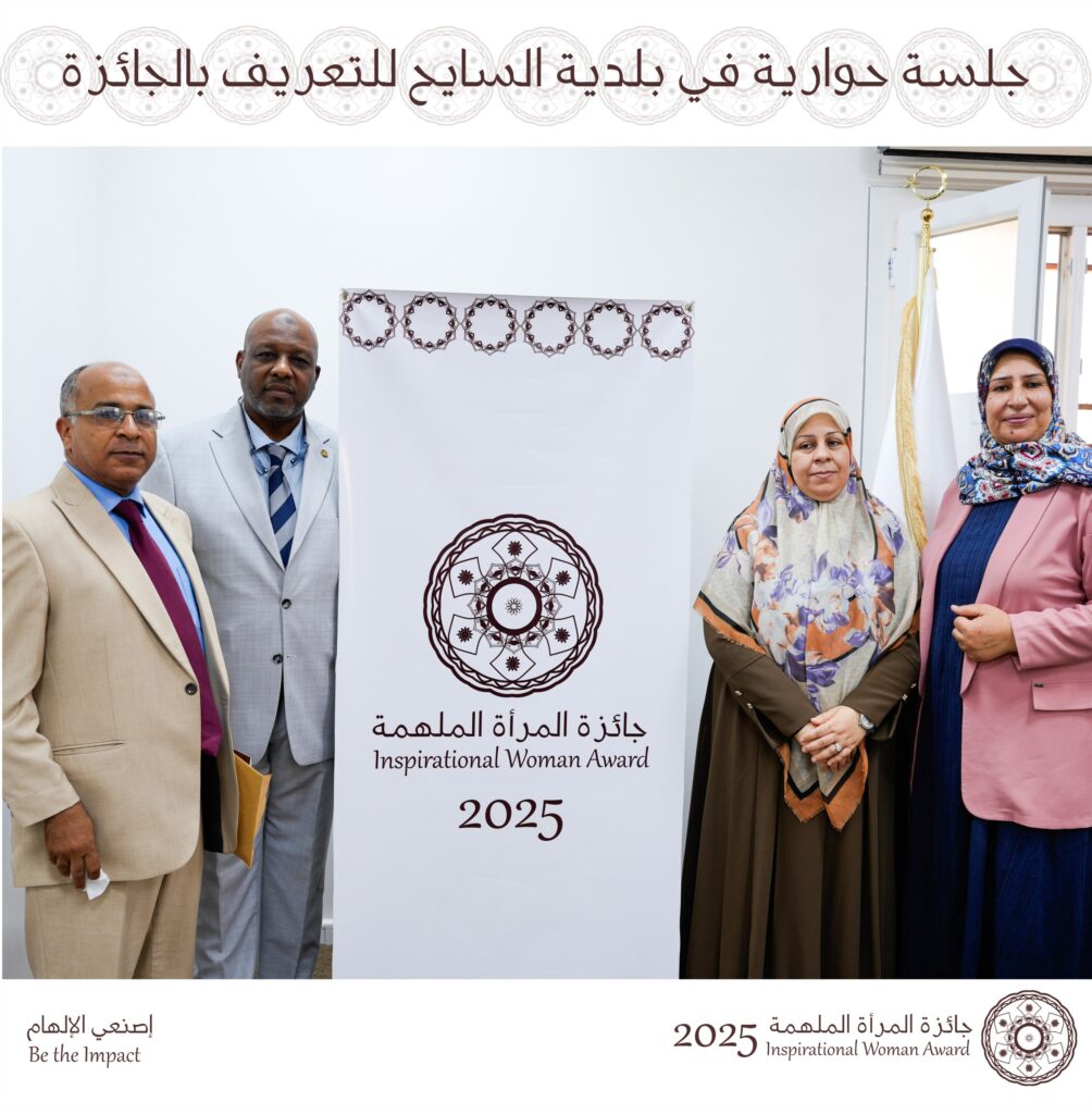 ضمن سلسلة اللقاءات التعريفية بجائزة المرأة الملهمة، احتضنت بلدية السائح جلسة تعريفية خُصصت للتعريف بمراحل الجائزة وأهدافها ودورها في تسليط الضوء على النماذج النسائية المؤثرة في المجتمع.