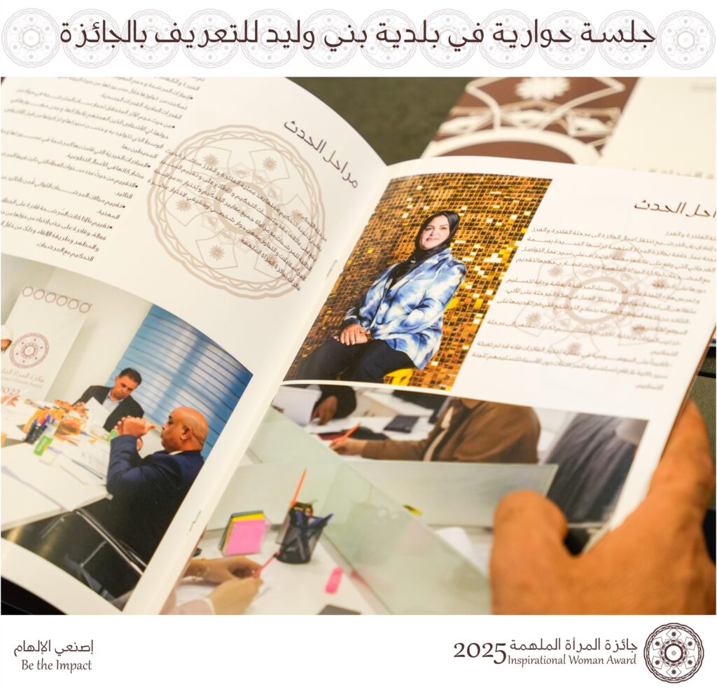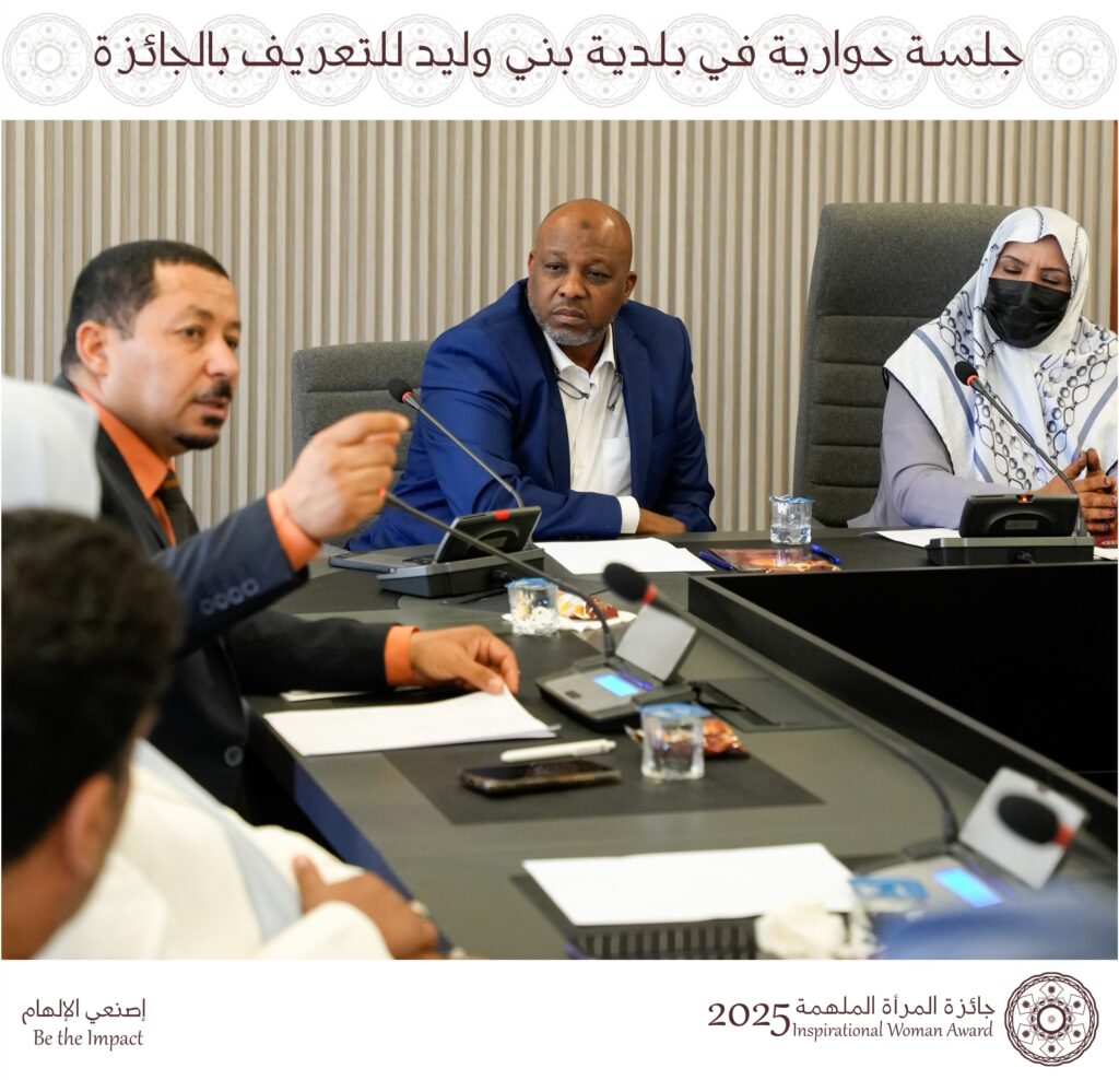 في إطار الجولات التعريفية بجائزة المرأة الملهمة 2025، عُقدت جلسة حوارية ببلدية مدينة بني وليد، خُصصت للتعريف بالجائزة ومراحلها، وتصحيح بعض المفاهيم المغلوطة المرتبطة بها.