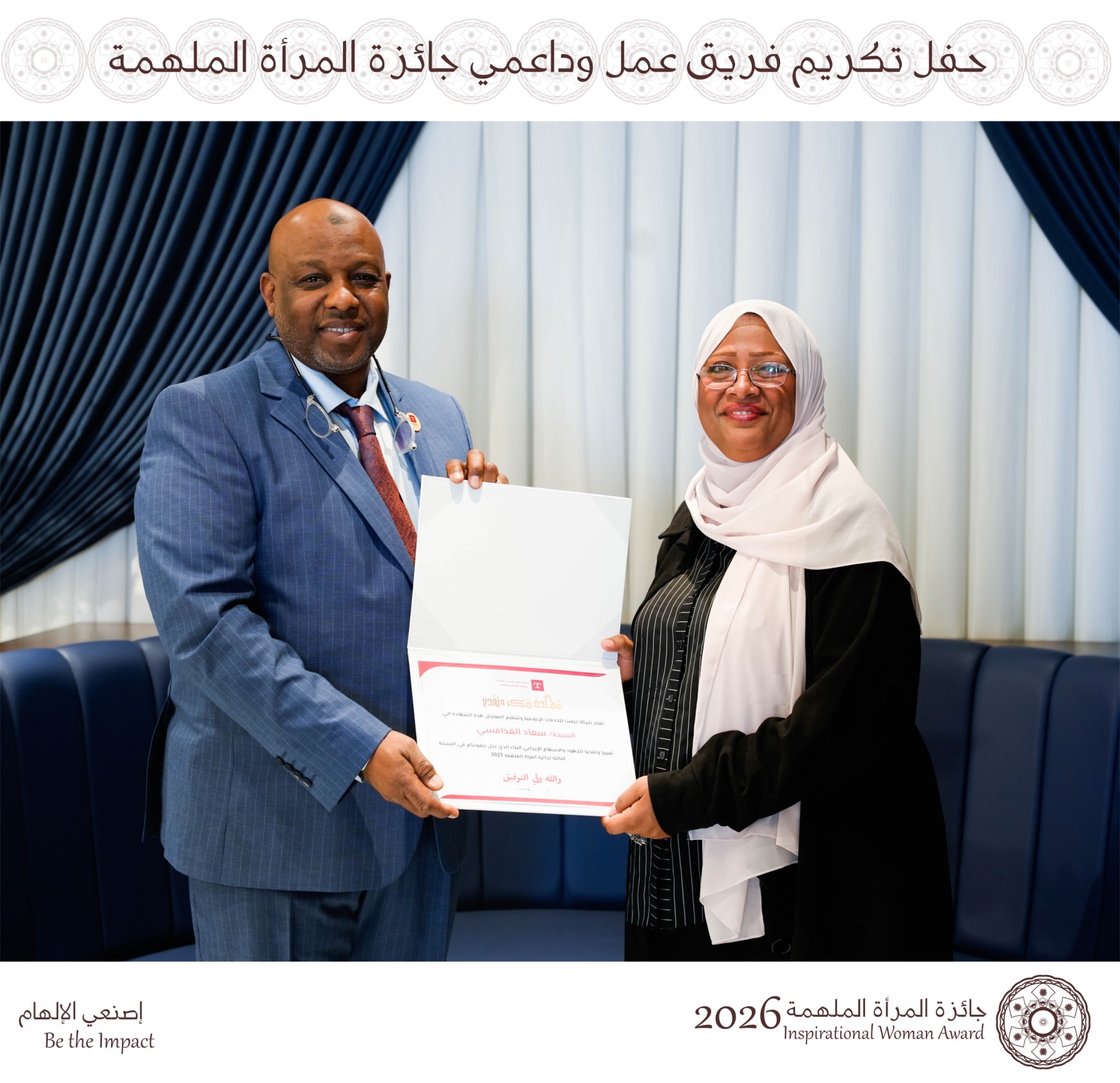 في أمسية لطيفة أقيم حفل تكريم فريق العمل والجهات الداعمة الذين كان لهم الدور المحوري في إنجاح مسيرة الجائزة، تقديراً لجهودهم وتفانيهم خلال مختلف المراحل.